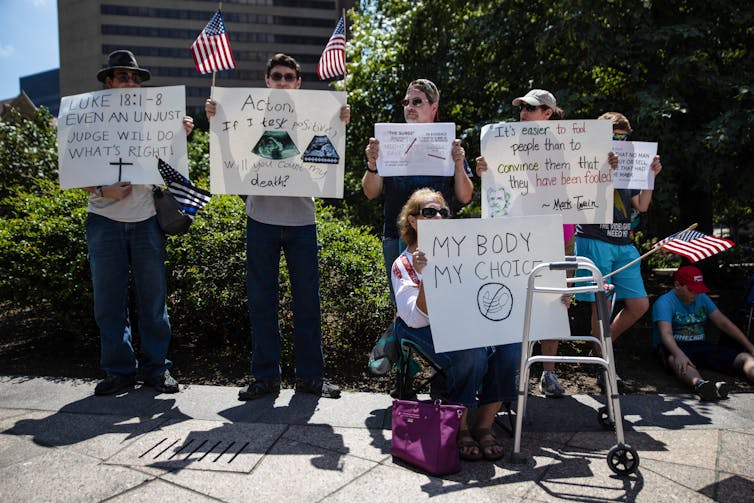 Some Americans have refused, wrongly claiming mask decrees violate the Constitution. An internet search turns up dozens of examples.